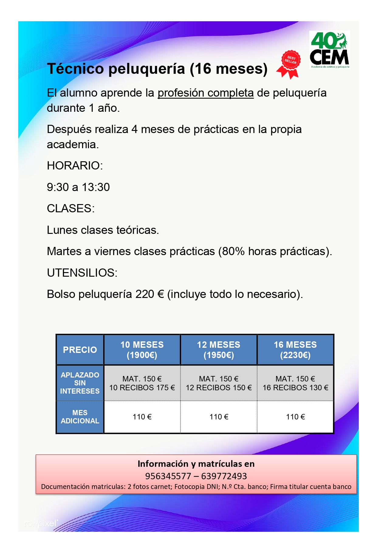 1 año + 4 meses de prácticas en la propia academia
